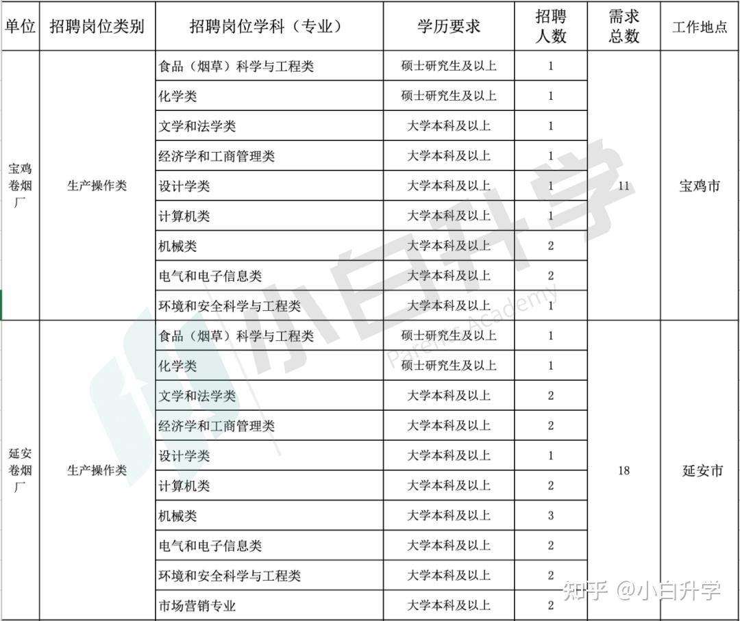 日前,陕西中烟工业有限责任公司根据发展需要,面向社会公开招聘2026年应届高校毕业生。招聘方向为基层五家卷烟厂,所需岗位及对应的专业要求如下: