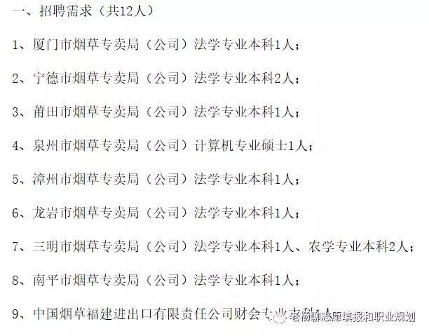 烟草局属于中国烟草总公司一个子系统,招聘专业以法学、会计、中文、计算机等为主。常见职位叫专卖管理员或者市场管理员、客户经理,管理学需要专业一般为法学居多,会计和计算机也会有一些,这一点和公务员招考很像。